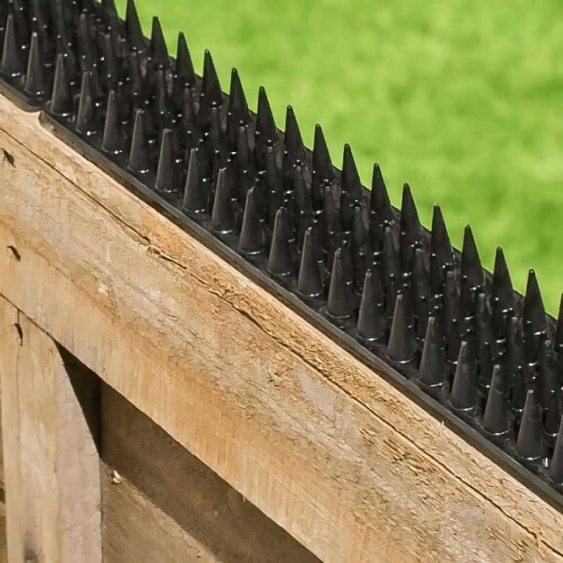 Durable pointy polypropylene spikes mounted on a flat strip.