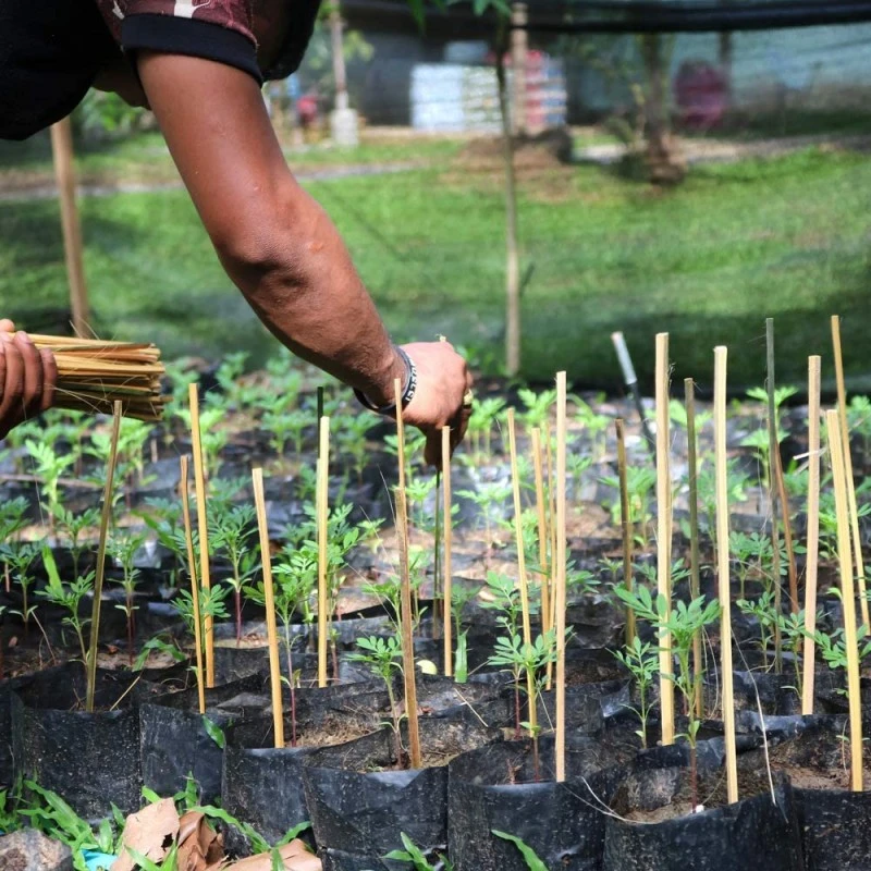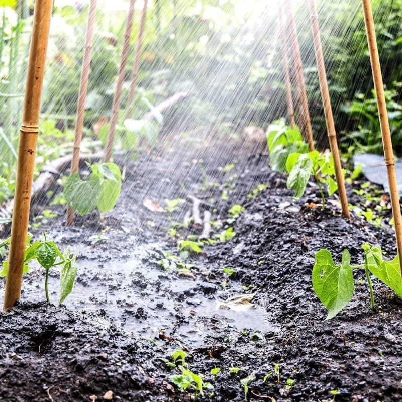 Traditional natural Bamboo provides support for growing plants and vegetables.
