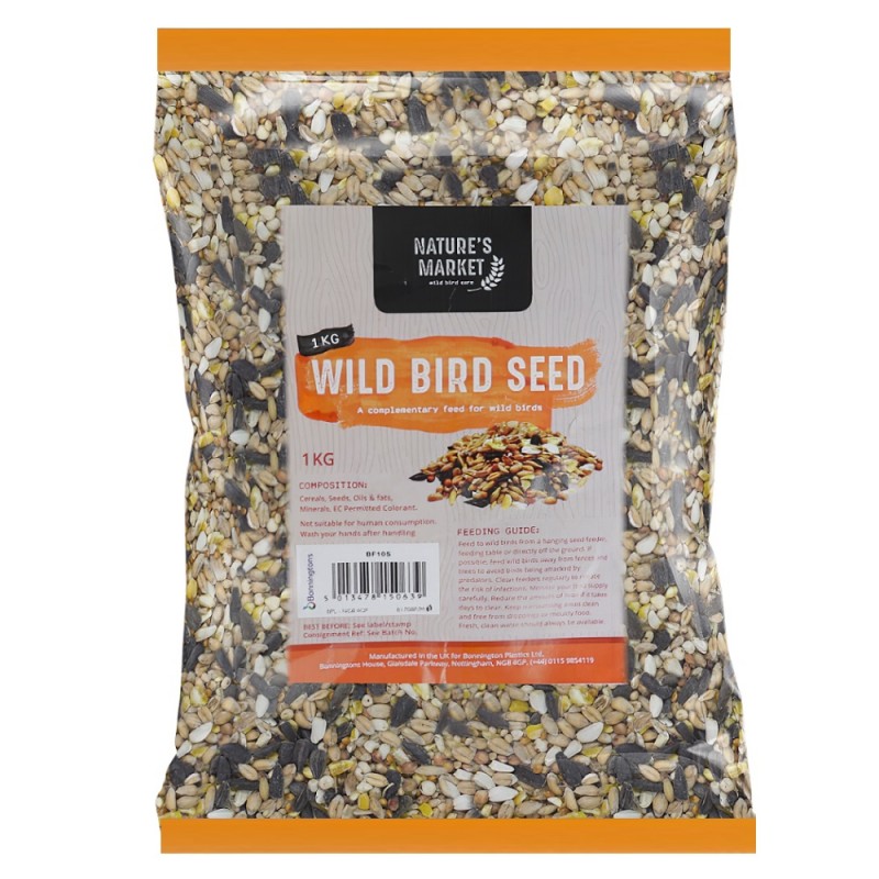 Natures Market 1kg wild bird seed mix ideal for all year round feeding of wild bird.