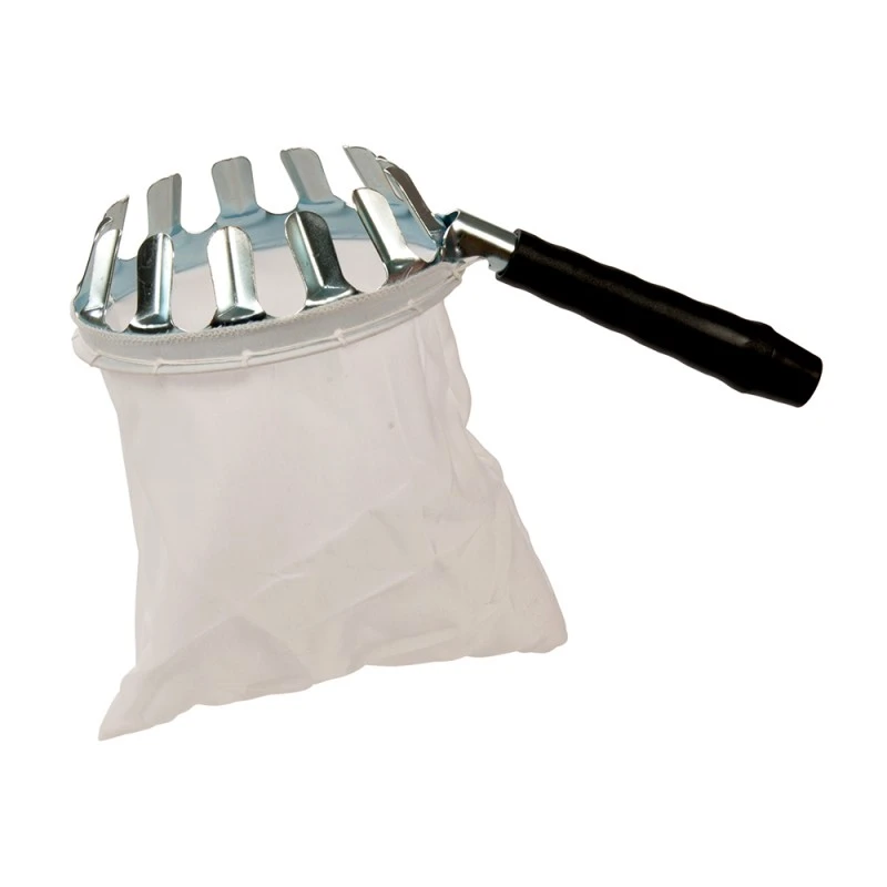 This picker has 13 chrome plated metal picking teeth and comes with a cotton cloth collection bag.Β