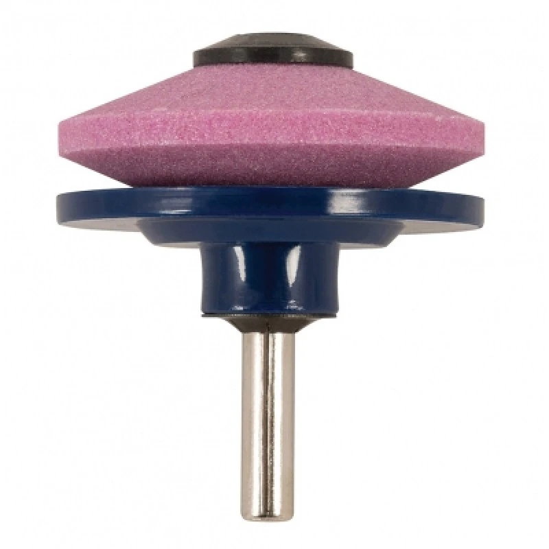 The sharpening disc has 2 angled faces and a backing guide disc.